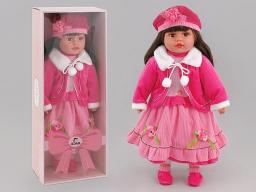 Stylowa lalka o długich ciemnych włosach idealnych do czesania i stylizacji. Lalka o wielkości 60 cm. Ubrana jest w piekny różowy strój: sukienkę, czapkę, buty, sweter. Wymiary opakowania: 25 x 62 x 15,5 cm.