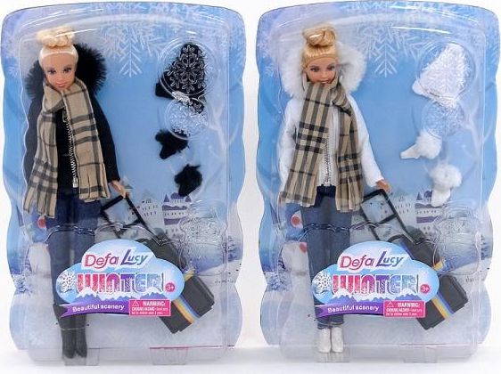 Piękna lalka z kolekcji Defa Lucy. Ubrana z kozaczki, jeansy, kurtkę zimową i szalik.