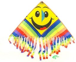Duży latawiec z motywem wesołej buźki. Bardzo szybki montaż latawca. Lekki i łatwy w sterowaniu. Wykonany z wytrzymałych materiałów, posiada metalowy stelaż. Świetna rozrywka na dworze. Latawiec zapakowany w folie. Wymiary opakowania: 80x9x2cm. Wiek: 7+.