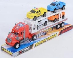 Laweta z 4 pojazdami to zestaw składający się z lawety oraz czterech aut. Produkt wykonany jest z PVC i ma wymiary 18,5x14x6 cm. Posiada napęd na koło zam.