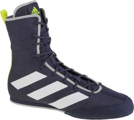 Buty adidas Box Hog 3 M GX2814 Właściwości: - Męskie buty do treningów głównie sportów walki - Wysoka cholewka za kostkę - Cholewka wykonana materiału syntetycznego - Podeszwa wykonana z gumy oraz pianki poliuretanowej - Nosek zabezpieczony dodatkową warstwą gumy - Rodzaj wiązania: sznurowane - Logo producenta - Kolor: granatowy