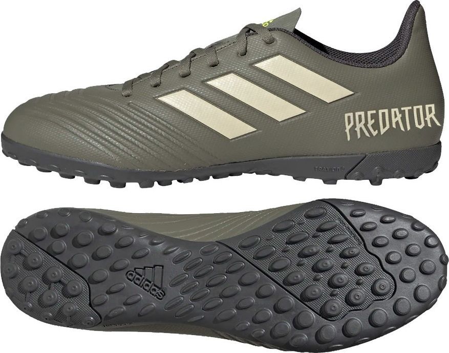 Kategoria: piłka nożna, Marka Sprzedaży: adidas, Dla kogo: męska, Cholewka: materiał syntetyczny, Podeszwa zewnętrzna: turf, Linia: Predator, Poziom: Rekreacyjne, Przeznaczenie: Sztuczna trawa, Kolekcja: zima 2019