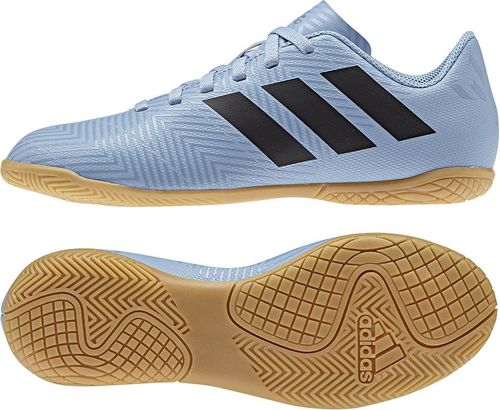 Kategoria: piłka nożna, Dla kogo: junior, Kolor: niebieski, Cholewka: materiał syntetyczny, Podeszwa zewnętrzna: halówka, Rodzaj nawierzchni: twarda, Marka Sprzedaży: adidas, Linia: Messi, Poziom: Treningowe - Półprofesjonalne, Przeznaczenie: Na hale, Kolekcja: zima 2018