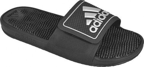 Relaks zapewniają ergonomiczne, masujące wypustki rozmieszczone na całej powierzchni stopy. Na stabilnością dba delikatny bieżnik na podeszwie. W dopasowaniu pomoże regulowany syntetyczny pasek. Oryginalność podkreśla duże logo firmy adidas.
