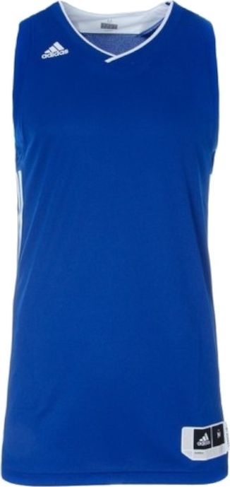 Męski t-shirt koszykarski adidas E Kit JSY. Model ten nie ma ramion, ma luźniejszy krój, który nie krępuje ruchów i pozwana na pełną swobodę na boisku. Koszulka koszykarska ma przedłużony fason, by zakryć ciało podczas wyskoków i podnoszenia ramion. Tkanina, z której została wykonana jest lekka i zwiewna, podczas intensywnej gry materiał szybko doprowadza nadmiar potu, zapewniając odpowiednią wentylację i chroni przed przegrzaniem się ciała. Śliska i gładka struktura tkaniny jest bardzo wygodna w użytkowaniu i praktycznie nieodczuwalna na ciele. Jednolitą kolorystykę ozdobiono lamówką, 3 paskami po boku oraz logo adidas w kolorze białym.