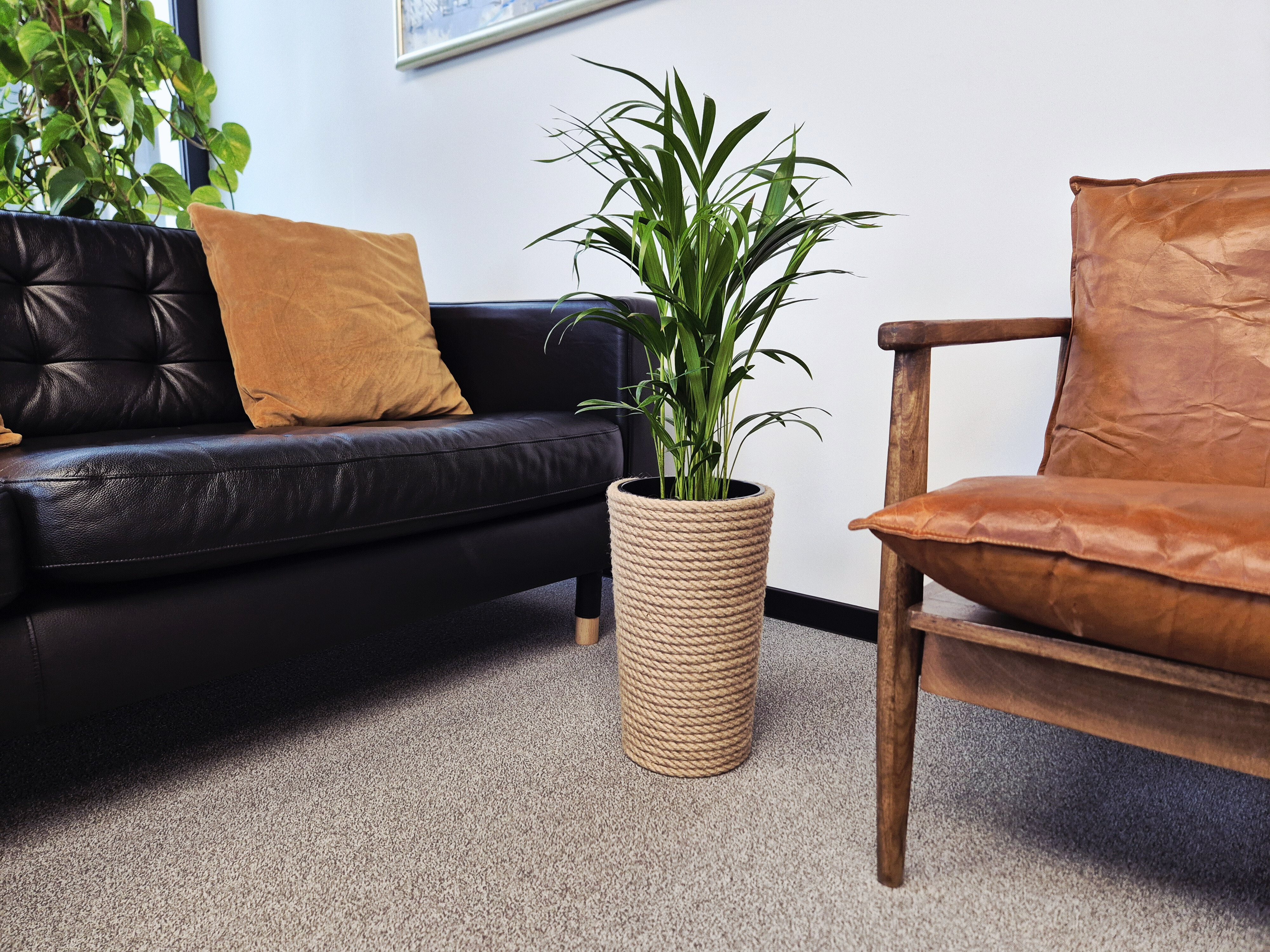 Każda doniczka jest wykonana ręcznie, nie powstaje w masowej, zmechanizowanej produkcji. Drobne różnice w splocie czy fakturze są efektem pracy ludzkich rąk i stanowią jej naturalny urok — każda sztuka jest jedyna w swoim rodzaju.