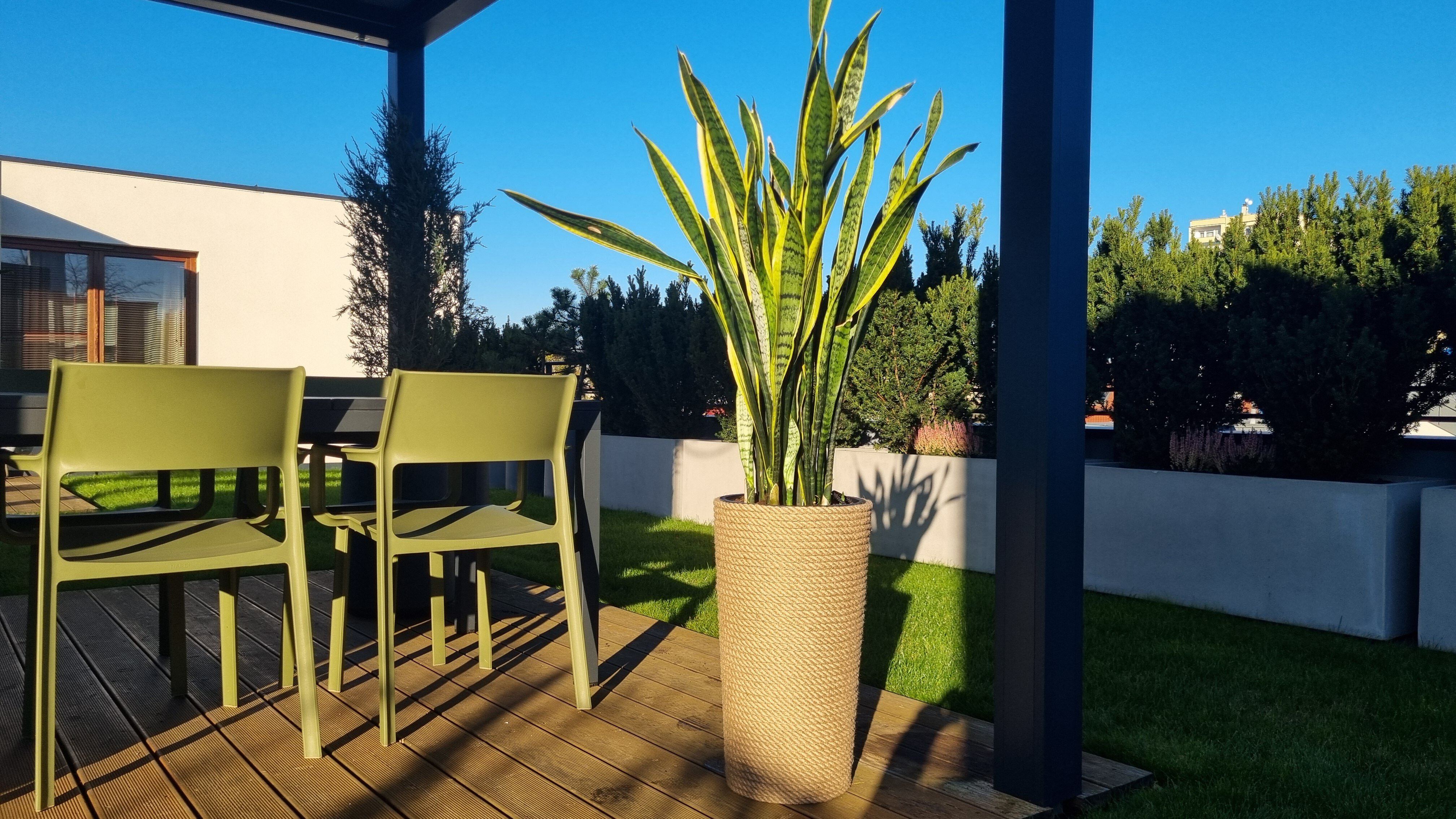 Donica jest odporna na mróz, dzięki czemu może być stosowana również na zadaszonych tarasach czy balkonach.