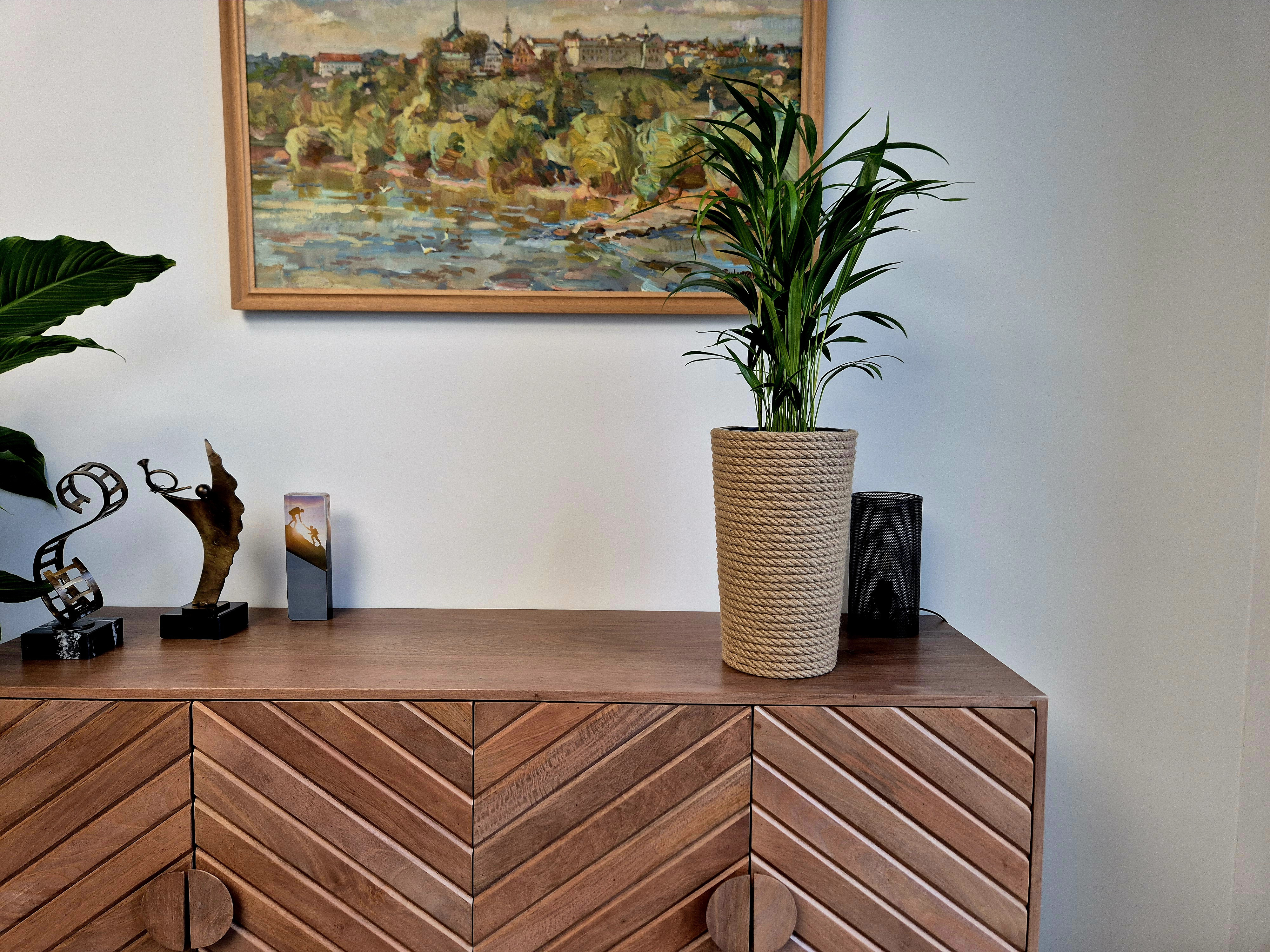 Nowoczesna forma doniczki łączy naturalny urok liny jutowej z trwałością tworzywa sztucznego, tworząc produkt o ponadczasowym designie i wysokiej jakości wykonania. To idealny wybór dla osób, które cenią piękno natury, ale nie chcą rezygnować z praktycznych rozwiązań.