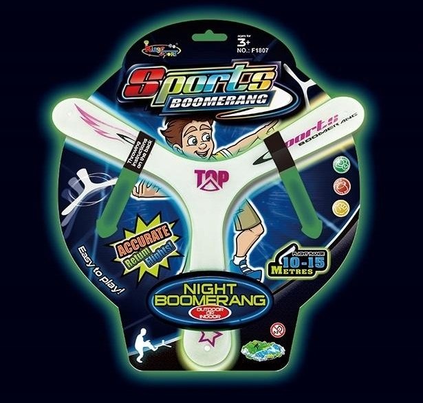 Boomerang sportowy 04386 wyróżnia się fluorescencyjnym wykończeniem, które świeci w ciemności. To sprawia, że zabawa staje się jeszcze bardziej ekscytująca, a wieczorne sesje z boomerangiem nabierają nowego wymiaru.