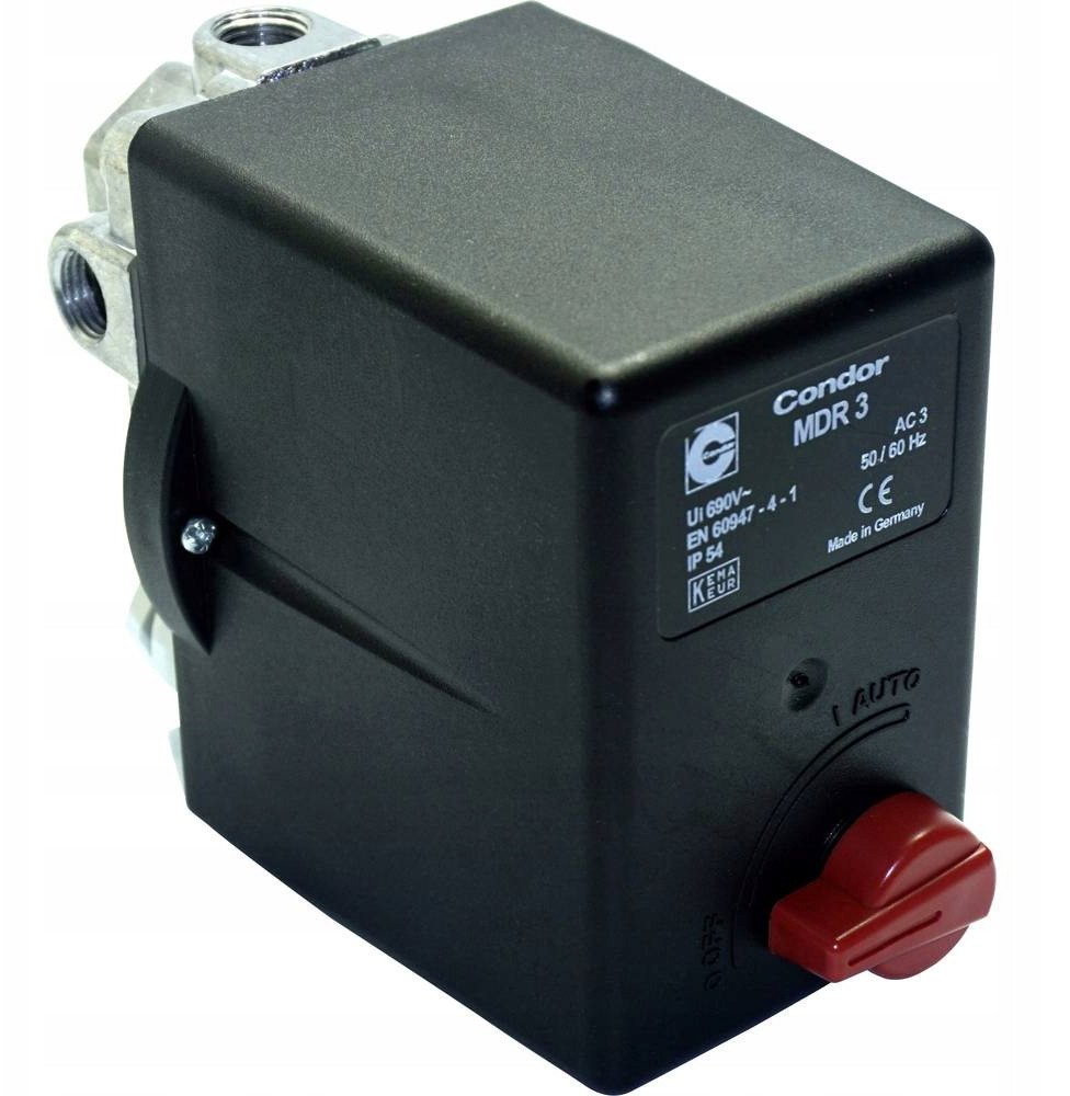 Ten presostat wyróżnia się przyłączem o średnicy 1/2 cala oraz trzema wyjściami, co zapewnia wszechstronność w różnych zastosowaniach. Maksymalne ciśnienie robocze wynosi 12 bar, co sprawia, że jest on odpowiedni do wielu typów sprężarek powietrza.