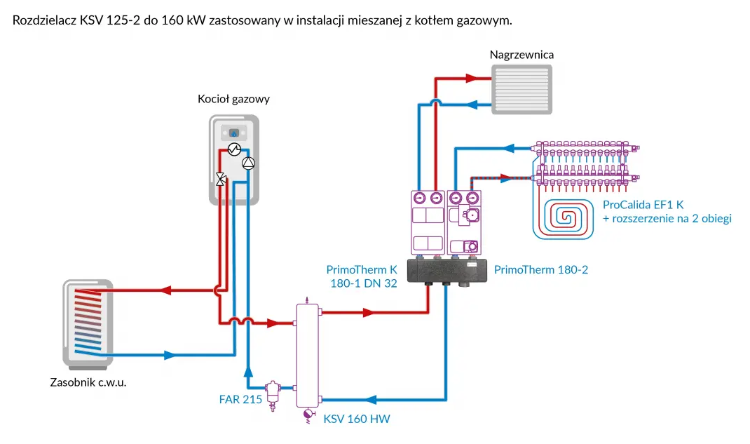 Rozdzielacz KSV 125-2, 160 kW, dla 2 obiegów pompowych