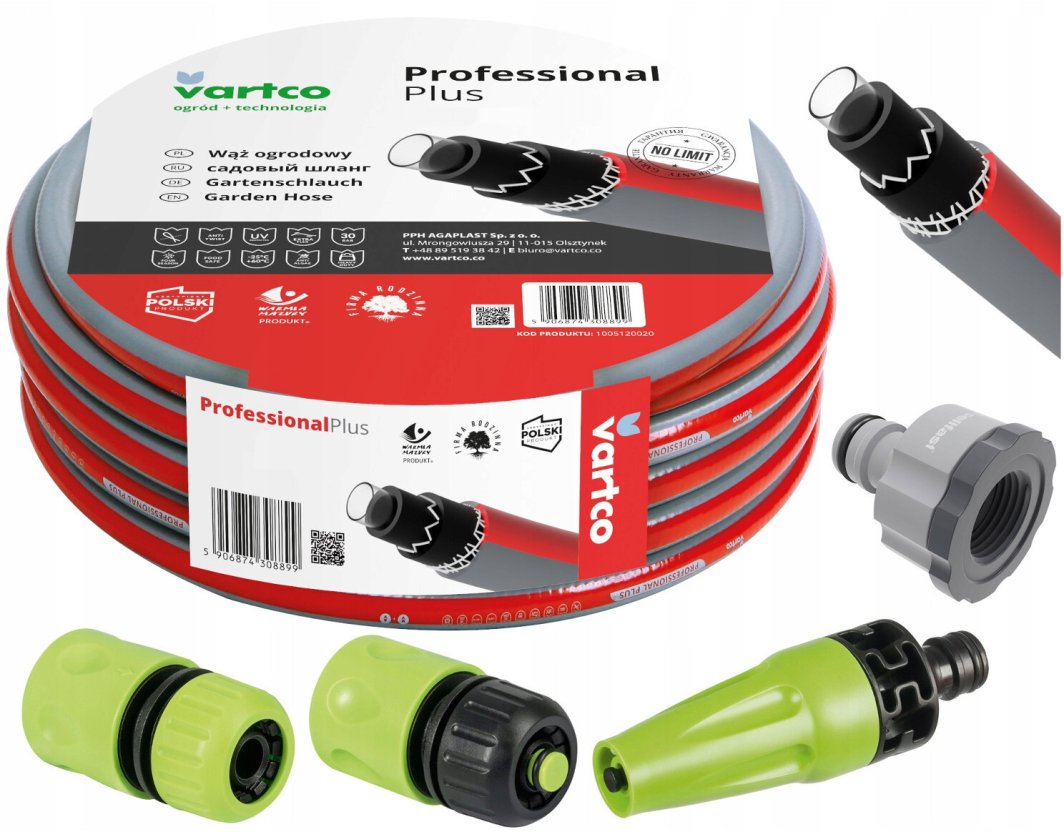Agaplast Wąż ogrodowy 6 warstw 30m 1/2" Vartco + złączki