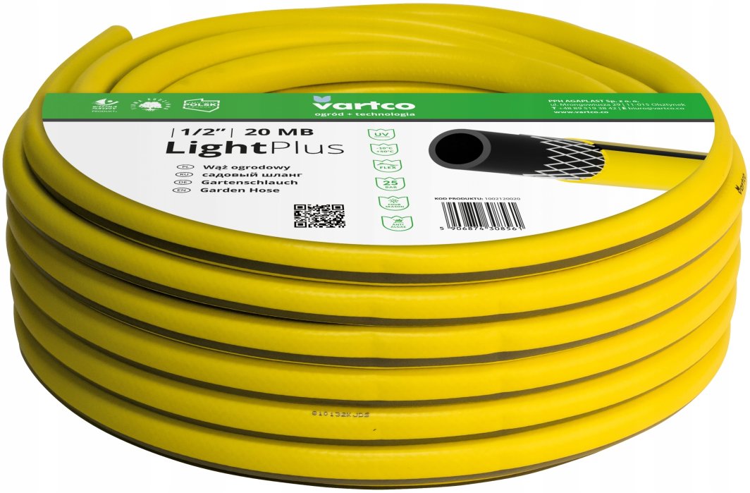 Wąż Vartco Light Plus wykonany jest z wysokiej jakości przędzy poliestrowej, co sprawia, że jest nie tylko elastyczny, ale także niezwykle trwały. Dzięki temu użytkownicy mogą cieszyć się jego funkcjonalnością przez długi czas, niezależnie od intensywności użytkowania.