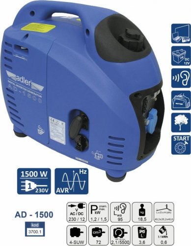 Agregat Adler ADLER GENERATOR PRĄDOTWÓRCZY INWENTOROWY 1,5KW AD-1500