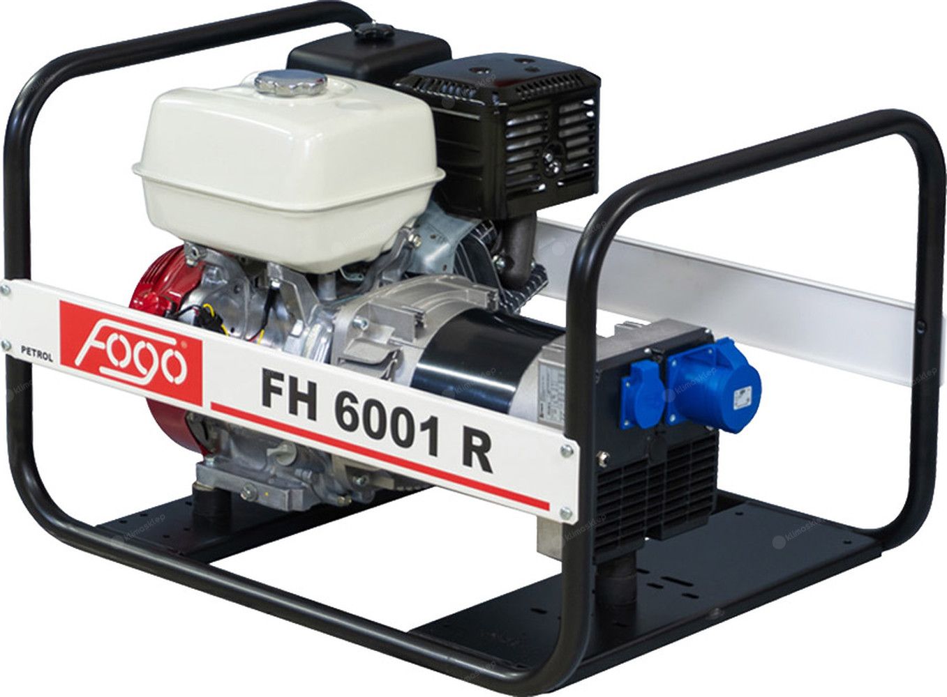 Agregat prądotwórczy Fogo FH 6001 R moc znamionowa: 5,6 kW moc maksymalna: 6,2 kW prąd jednofazowy 230V silnik HONDA Agregat prądotwórczy Fogo FH 6001-R Agregat prądotwórczy Fogo FH6001R jest to przenośny agregat z profesjonalnym silnikiem benzynowym HONDA GX390 dla odbiorców mających wysokie wymagania, o mocy znamionowej 5,6kW (moc maksymalna: 6,2kW) na prąd jednofazowy.