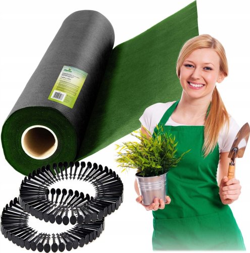 Agrowłóknina ogrodowa 1,6 m x 50 m 90 g/m2 + 100 szpilek Plonos - czarno-zielona