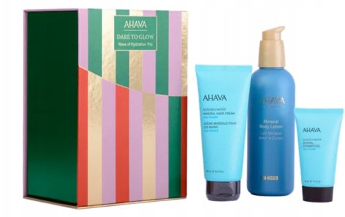 Ahava Wave of Hydration Trio Set: Dead Sea Water, Hand Cream, 100 ml + Dead Sea Water, Shower Gel, For All Skin Types, 40 ml + Sea Kissed, Body Lotion, 250 ml