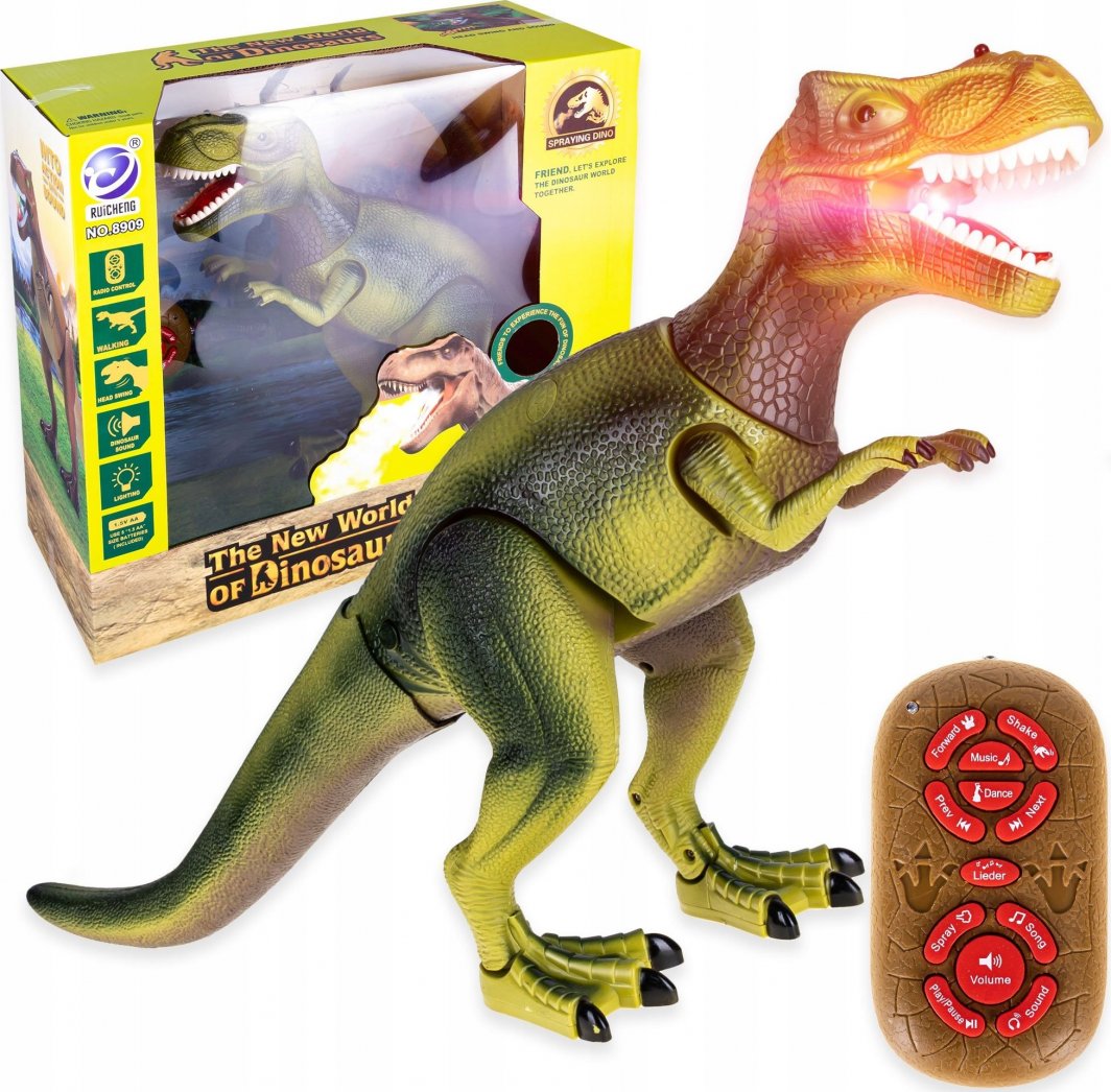 Interaktywny, zdalnie sterowany dinozaur to idealny prezent dla każdego fana tych stworzeń. Sterowany pilotem, z efektami dźwiękowymi i świetlnymi zapewni mnóstwo zabawy każdemu dziecku.