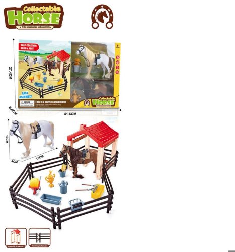 - Zawartość zestawu: 2 konie, akcesoria stajenne, pihatto, ogrodzenie