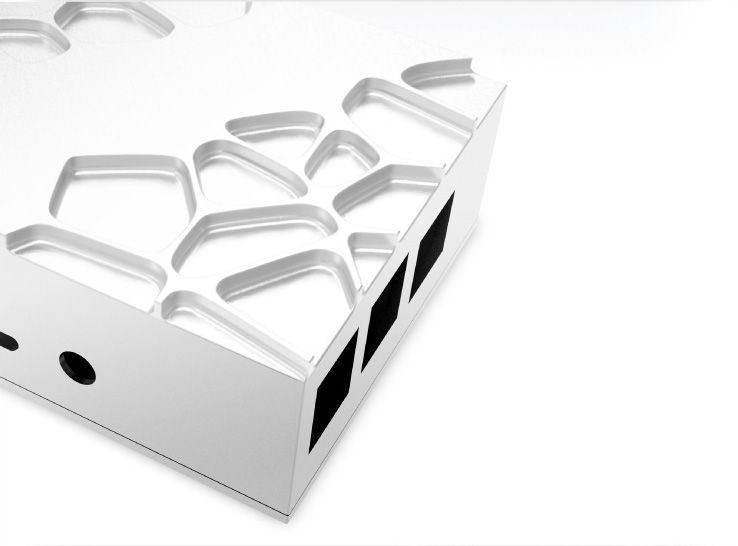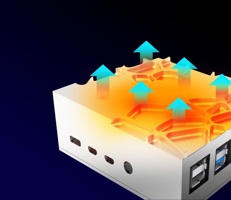 Cała aluminiowa obudowa jest wytrzymała i zapewnia wydajne rozpraszanie ciepła, dzięki czemu system działa optymalnie, nawet przy dużym obciążeniu.