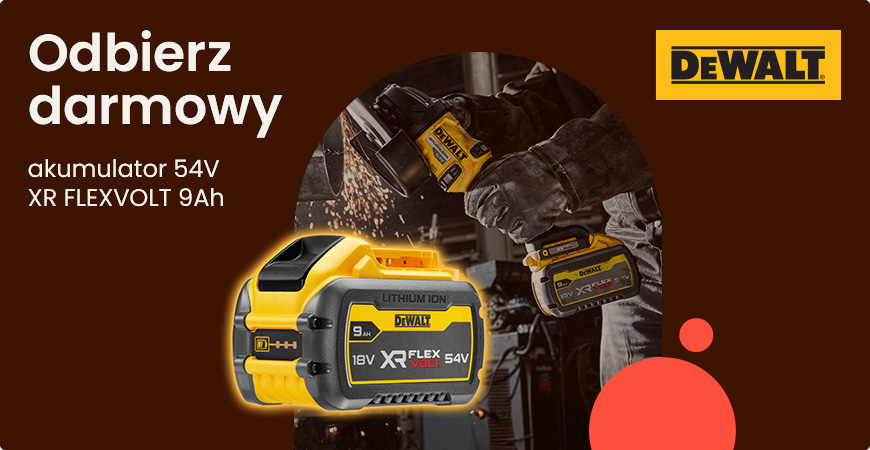 Nie przegap wyjątkowej szansy na wzbogacenie swojego arsenału narzędzi DEWALT! Skorzystaj z promocji i odbierz akumulator 54V XR FLEXVOLT 9 Ah! To klucz do elastycznej pracy, dzięki technologii Flexvolt, która umożliwia zasilanie zarówno urządzeń 54V, jak i 18V.