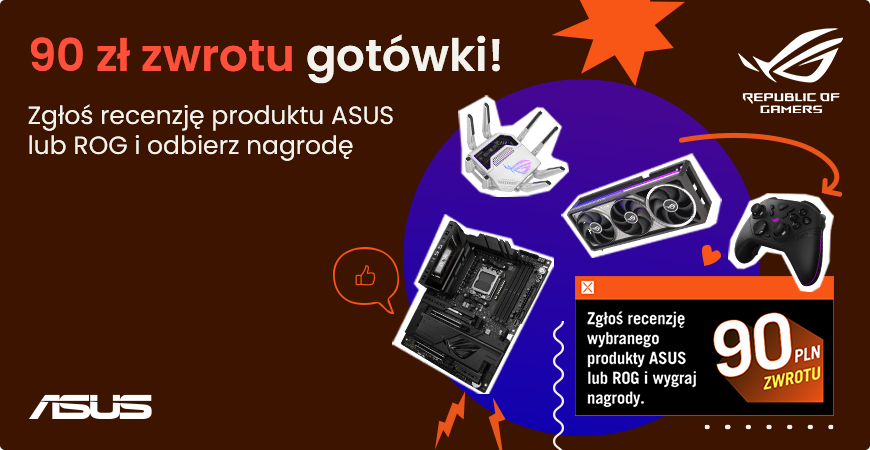 Masz sprzęt ASUS lub ROG? Napisz recenzję i zyskaj 90 zł zwrotu gotówki! Sprawdź, jak Twoja opinia zamienia się w dodatkowe środki. Zobacz, jakie to proste!