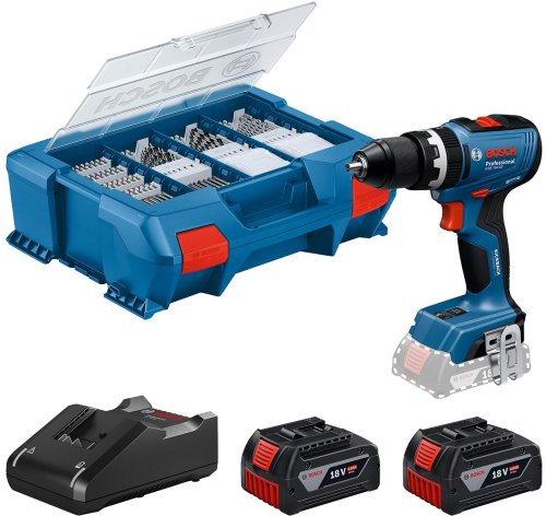 W zestawie z wiertarką znajdują się dwa akumulatory GBA 18V 4.0Ah oraz szybka ładowarka GAL 18V-40, co zapewnia pełne wyposażenie do natychmiastowego rozpoczęcia pracy. Całość zapakowana jest w praktyczną walizkę L-Case Pick&Click, co ułatwia transport i przechowywanie narzędzia.
