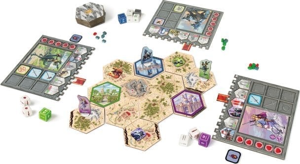 - 6 tekturowych pionków bohaterów i 6 plastikowych podstawek,