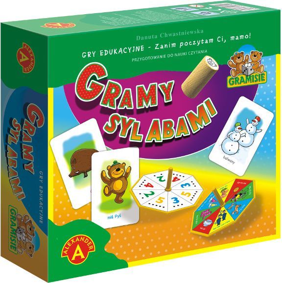 Gramy Sylabami jest jedną z serii 6 gier przygotowujących do nauki czytania. Wszystkie gry powiązane są z metodą 101 kroków Danuty Chwastniewskiej zawartą w elementarzach: Poczytam ci, mamo!. Kształcą umiejętności, które są ważne w przygotowaniu do czytania, czyli słuch fonemowy, koordynację wzrokową, słuchową i ruchową, a także koncentrację słuchową. Zabawy i gry w zestawie Gramy Sylabami mają na celu opanowanie umiejętności podziału wyrazów na sylaby. Zestaw zawiera trzy zabawy przygotowujące do gier i cztery gry, które odnoszą się do słuchowego wyodrębnienia sylab. Gra przeznaczona: dla 2 do 4 graczy, w wieku od 4 lat.