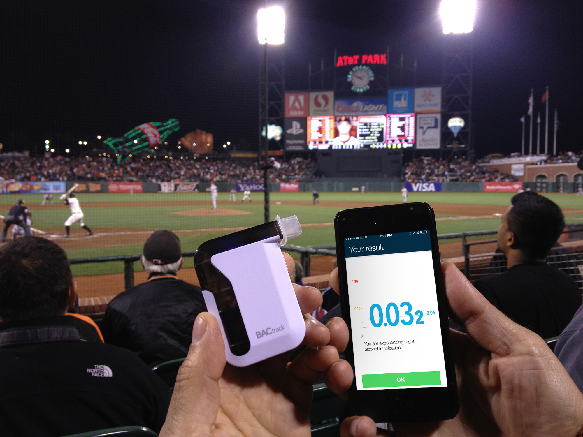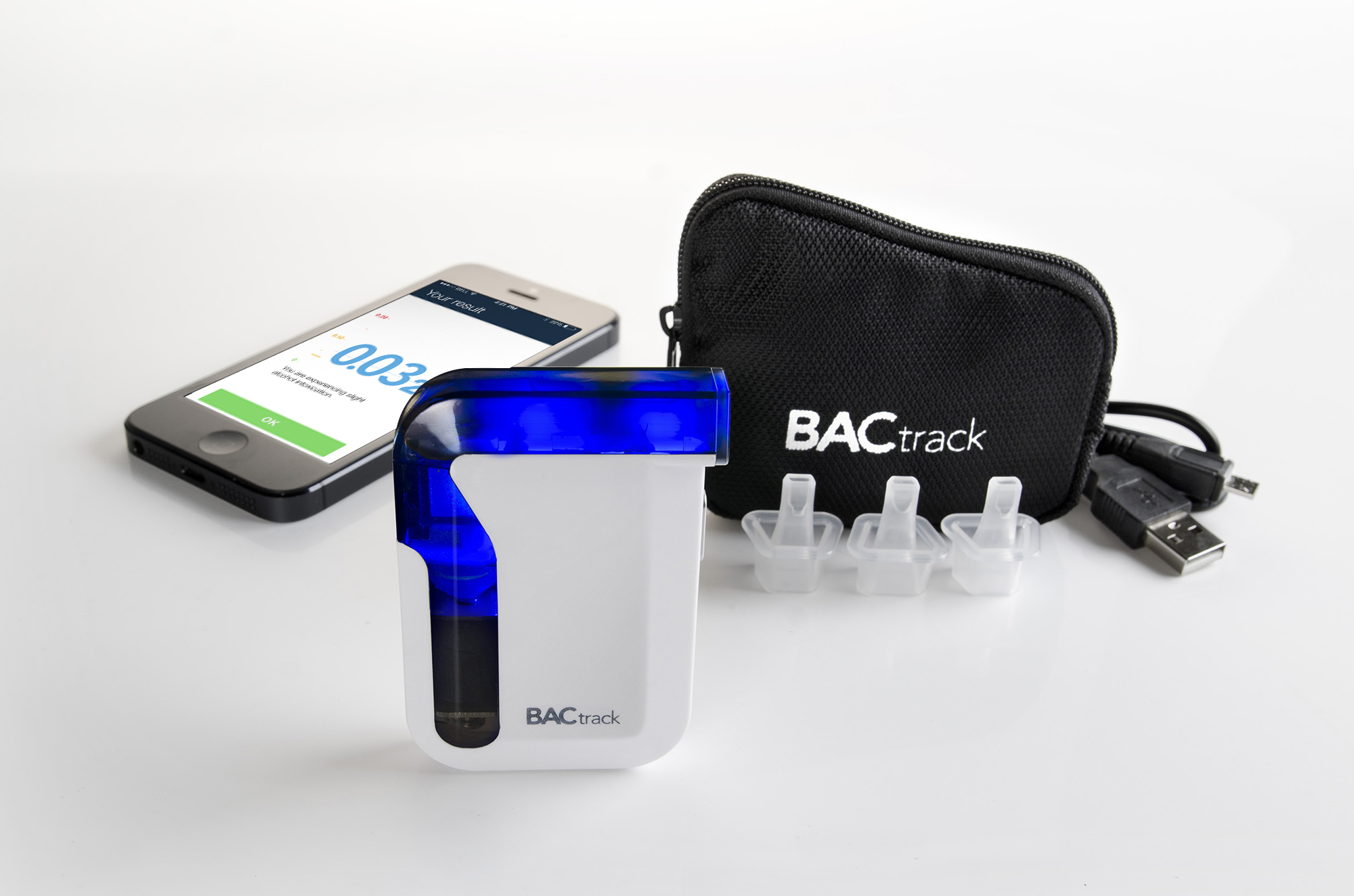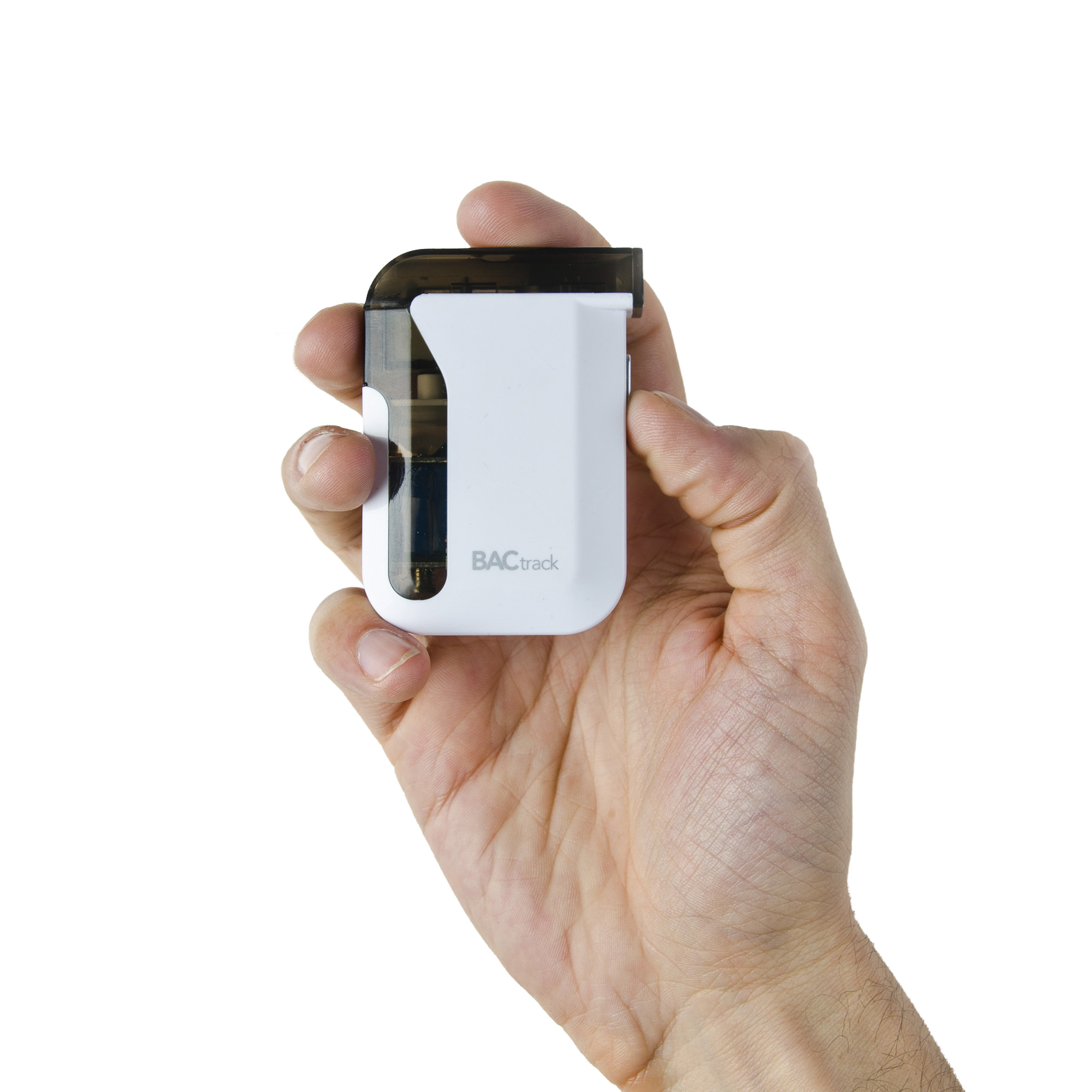 ![]() | BACtrackMobileWysokiej klasy alkomat cyfrowy służący do pomiaru stężenia alkoholu we krwi na podstawie analizy wydychanego powietrza. |