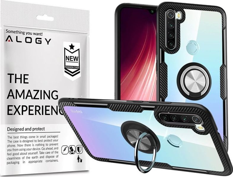Alogy Etui Alogy Ring Holder Clear Armor do Xiaomi Redmi Note 8 czarne + Szkło Alogy uniwersalny