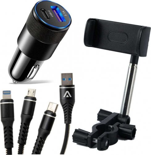 Uchwyt samochodowy na lusterko wsteczne Alogy do telefonu + Kabel 3w1 + Ładowarka USB-C + USB 3.1A