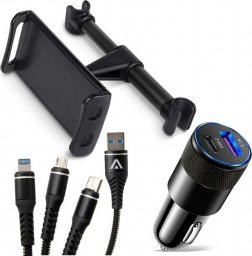 Uchwyt samochodowy na zagłówek Alogy do tabletu telefonu + Kabel 3w1 + Ładowarka USB-C + USB 3.1A