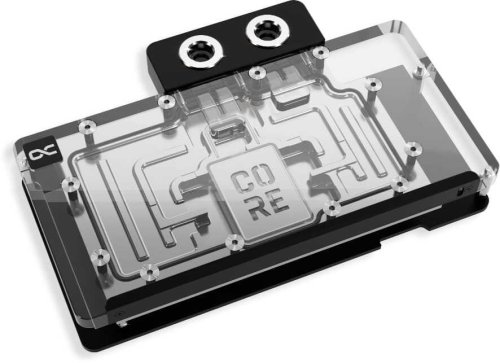 Inżynierowie Alphacool całkowicie przebudowali strukturę wewnętrzną bloku, wykorzystując zaawansowane symulacje programowe do optymalizacji przepływu cieczy. Zmodyfikowana jetplate oraz precyzyjnie dobrany odstęp między bazą chłodzenia a komponentami PCB pozwalają na błyskawiczne odprowadzanie energii cieplnej z rdzenia i sekcji zasilania. Pod względem wizualnym produkt wyróżnia się efektownym emblematem serii Core oraz pełnym podświetleniem digital aRGB, które równomiernie rozświetla akrylową pokrywę. W zestawie znajduje się również aluminiowy backplate, który usztywnia konstrukcję i nadaje karcie elegancki, spójny wygląd.
