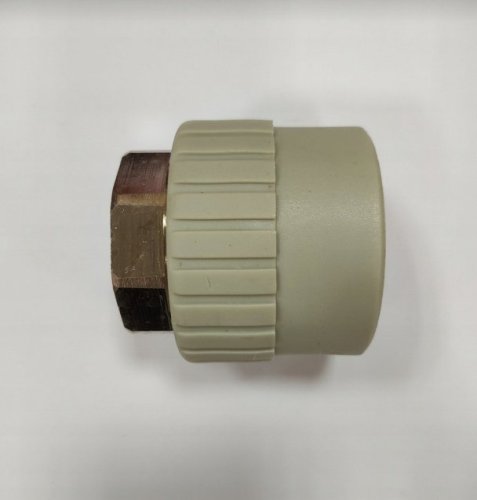 Złączka została stworzona z wysokiej jakości polipropylenu (PP-R) oraz mosiądzu, co zapewnia jej odporność na działanie wysokich temperatur oraz różnorodne warunki eksploatacyjne. Materiały te są znane z trwałości i długowieczności, co czyni je idealnym wyborem do zastosowań w instalacjach wodociągowych.