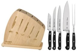 Drewniany blok, w który wyposażony jest zestaw, nie tylko elegancko eksponuje noże, ale także chroni je przed uszkodzeniami oraz pomaga utrzymać porządek w kuchni.