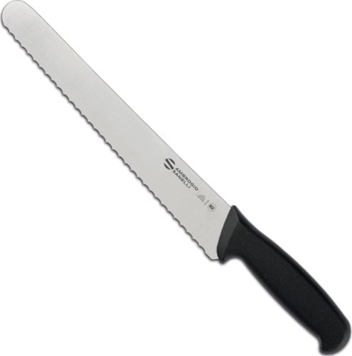 Kod producenta: S362.026Nóż marki Ambrogio Sanelli z linii SUPRA to profesjonalne narzędzie przeznaczone dla szefów kuchni. Sprawdzi się szczególnie w cukierni czy piekarni. Posiada ostrze wykonane z wysokiej jakości stali nierdzewnej NITRO-B, w której dodatek cząsteczek azotu znacznie polepsza właściwości antykorozyjne oraz końcową twardość po ulepszaniu cieplnym. Ergonomiczny uchwyt wykonany został z trwałego tworzywa SEBS, które jest elastyczne i odporne na działanie czynników atmosferycznych, ozonu i UV. Nóż nadaje się do sterylizacji, jest wysoce odporny na uderzenia i korozję. Nie nadaje się do mycia w zmywarce.Cechy produktu: