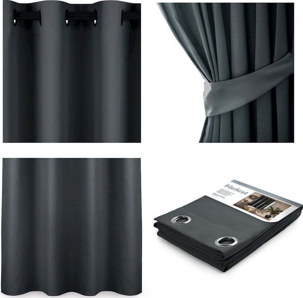 AmeliaHome AMELIAHOME ZASŁONA BLACKOUT EYELETS CHARCOAL 140X175 1PC