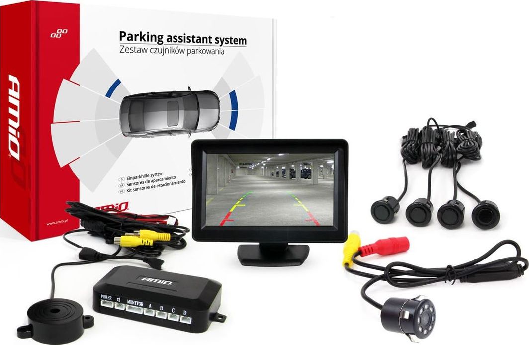 AMiO Zestaw czujników parkowania tft 4,3 z kamerą hd-307-ir 4 sensory czarne gold