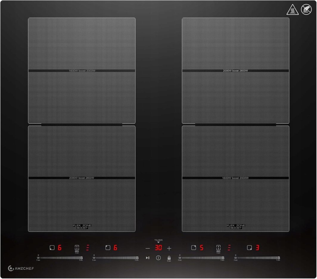 AMZCHEF Płyta indukcyjna 60 cm 4-strefowa 9 poziomów mocy Booster 7400 W