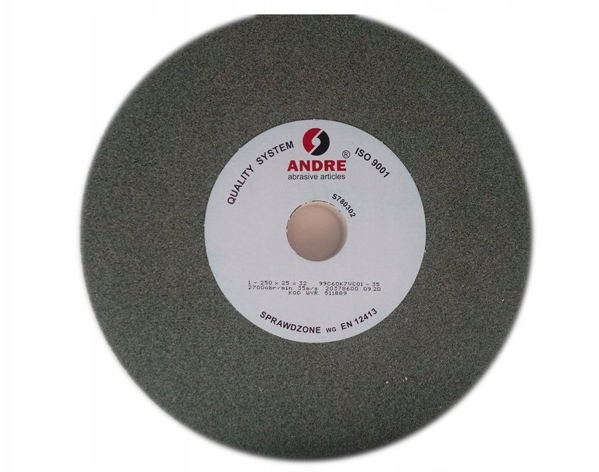 Ściernica ANDRE charakteryzuje się średnicą otworu wynoszącą 32 mm oraz średnicą tarczy 250 mm. Oferuje prędkość roboczą na poziomie 35 m/s, co umożliwia efektywne i szybkie szlifowanie. Ziarno ścierne o numerze 60 oznacza makroziarno średnie, a twardość ściernicy oznaczona literą K wskazuje na jej miękkość, co jest korzystne w przypadku obróbki delikatniejszych materiałów.