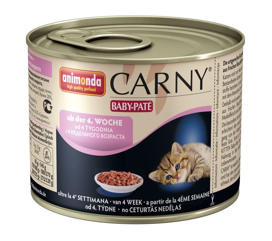 Receptura pasztetu dla małych kociąt została przygotowana bardzo starannie. Carny Baby Pate w pełni zaspokaja potrzeby kociąt już od czwartego tygodnia ich życia. Delikatna konsystencja puszystego musu ułatwia przejście od mleka do pokarmów stałych.