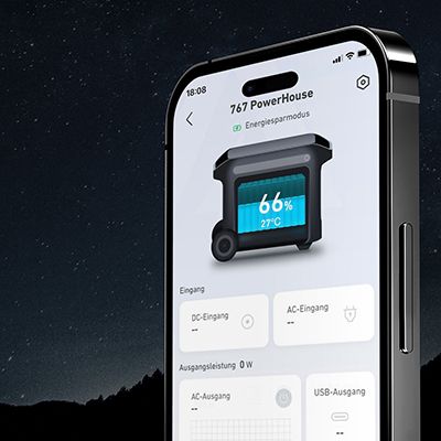 Nie wstawaj z wygodnego hamaka — masz pełną kontrolę nad przenośną elektrownią prosto z wygodnego telefonu. Dzięki szybkiemu i stabilnemu połączeniu Bluetooth możesz wyświetlać czas ładowania, pozostały poziom naładowania baterii, temperaturę i dostosowywać zużycie energii — Wi-Fi nie jest wymagane!