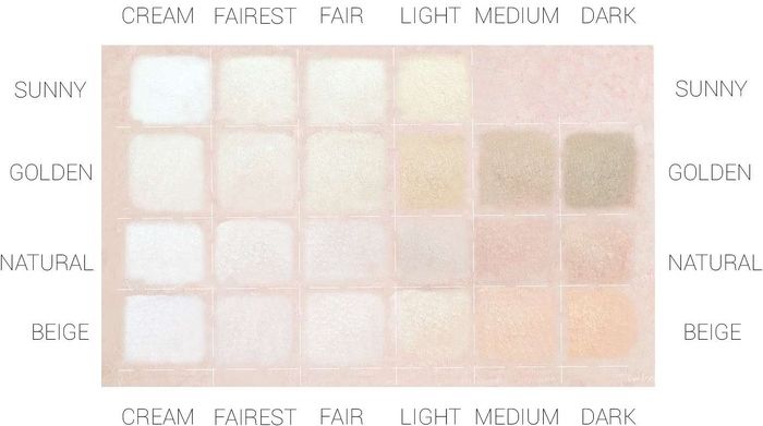 Kryjące podkłady mineralne Annabelle Minerals dostępne są w czterech gamach kolorystycznych, w których wyróżniamy kilka poziomów jasności.