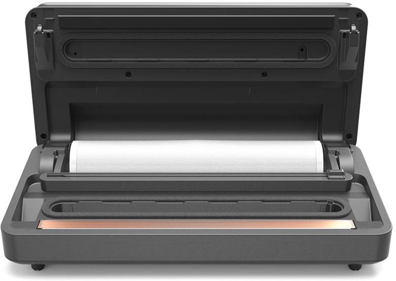 Przede wszystkim w Twoich rękach znajdzie się zawrotna opcja nieprzerwanego pakowania do 100 worków, dodatkowo jednak włożysz ich całą rolkę do zintegrowanego pojemnika. Przy okazji nie będziesz miał problemów z przycięciem worków, mając przy sobie jednoręczną gilotynę. Nie ma sensu się forsować. Na odwrocie urządzenia znajduje się wbudowana przestrzeń na przewód ukryta w dolnej części pakowarki.