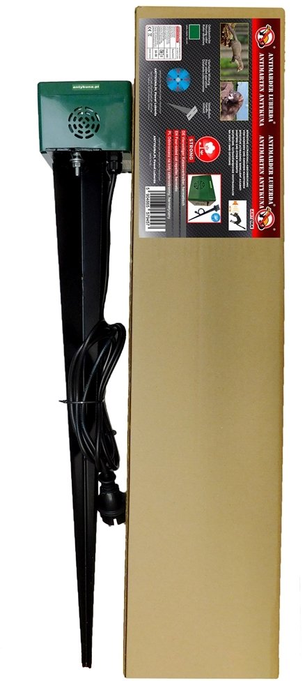 Antykuna.pl Odstraszacz STRONG Hermetyczny do ogrodu, na taras, parking, działa na 4 strony, wbijany do ziemi Zasilanie 230V