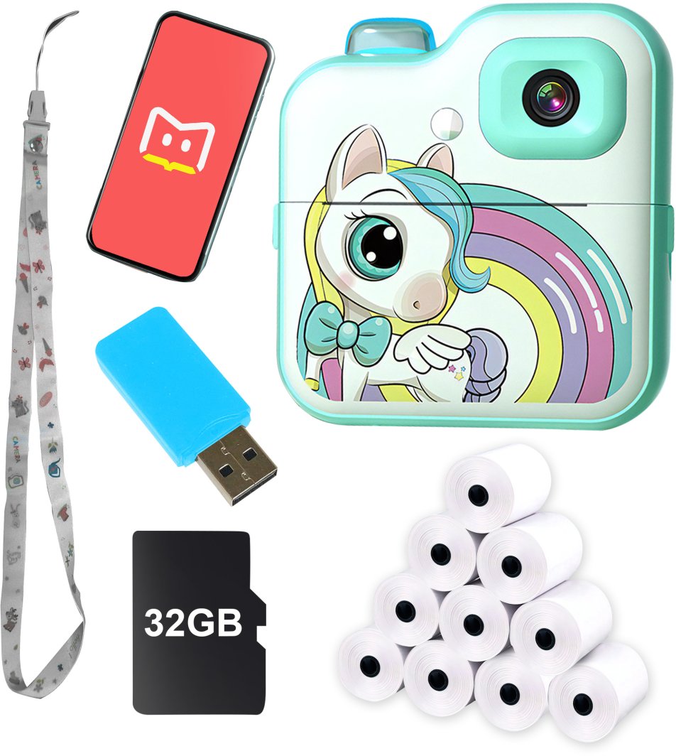 Aparat oferuje szereg przydatnych funkcji, w tym stabilizację obrazu oraz cyfrowy zoom, co czyni go wszechstronnym narzędziem do fotografii. W zestawie znajduje się karta microSD o pojemności 32 GB oraz 10 rolek papieru termicznego, co pozwala na natychmiastowe drukowanie zdjęć bez dodatkowych wydatków.