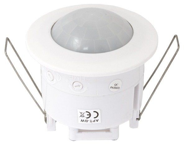 Estetyczny, sufitowy czujnik ruchu 360° PIR (na podczerwień) z wygodną regulacją natężenia oświetlenia oraz czasu świecenia. To wspaniałe narzędzie pozwoli nam np. na zautomatyzowanie sterowania oświetleniem. Czujnik jest niezwykle praktyczny i maksymalnie bezobsługowy. Wykorzystuje technologię IR (podczerwieni), która reaguje na ciepłotę ludzkiego ciała z odległości nawet do 6 metrów! Wystarczy znaleźć się w zasięgu czujnika ruchu aby aktywować urządzenie! Potrafi ono funkcjonować zarówno w trybie dziennym jak i nocnym oraz umożliwia regulację czasu świecenia (sterowanie dwoma potencjometrami z boku czujnika).