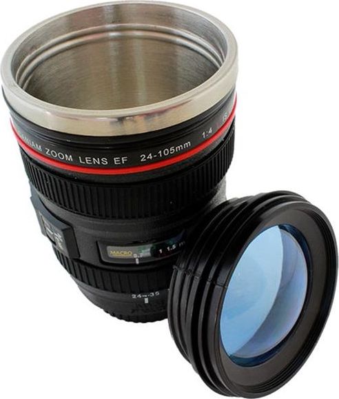 Kubek termiczny obiektyw wzorowany na canon. Kubek w kształcie obiektywu Canon 24-105mm - zabłyśnij niezwykłym gadżetem wśród swoich znajomych!