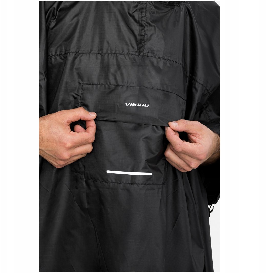 Viking Vesper jest wyposażone w praktyczne kieszenie, w tym dodatkową kieszonkę na plecach, idealnie dopasowaną do wymiarów plecaka, oraz kieszeń na piersi zapinaną na rzep. Co więcej, poncho można łatwo spakować do kompaktowego woreczka, co znacznie ułatwia transport i przechowywanie.